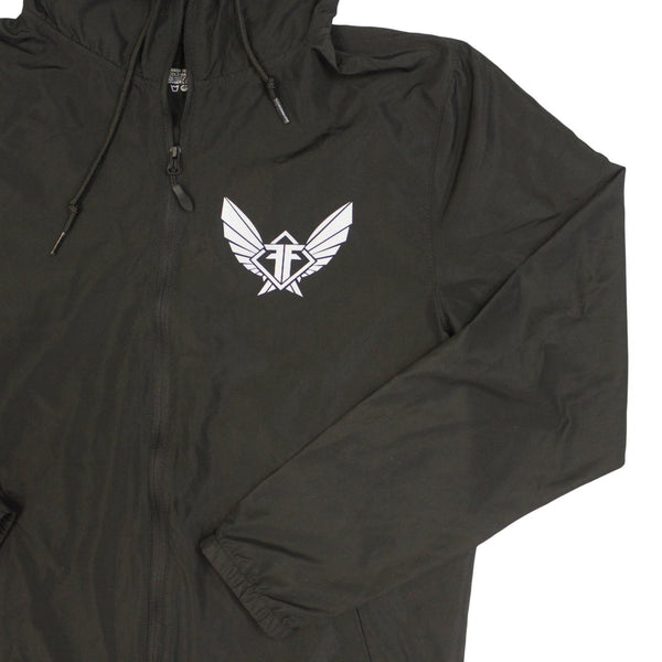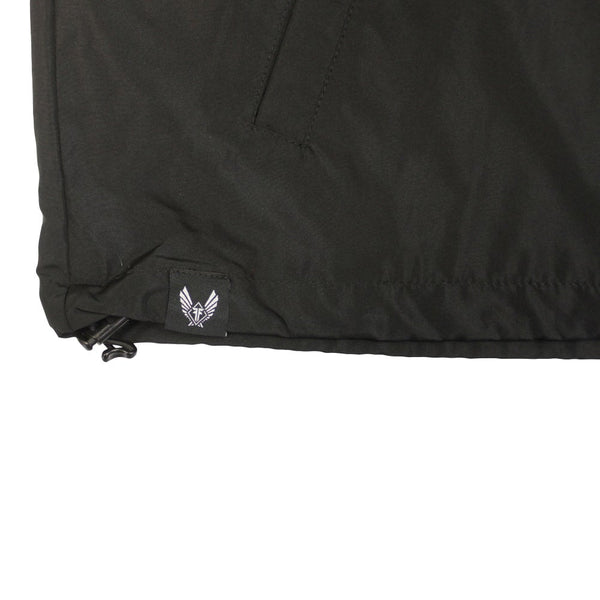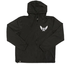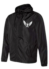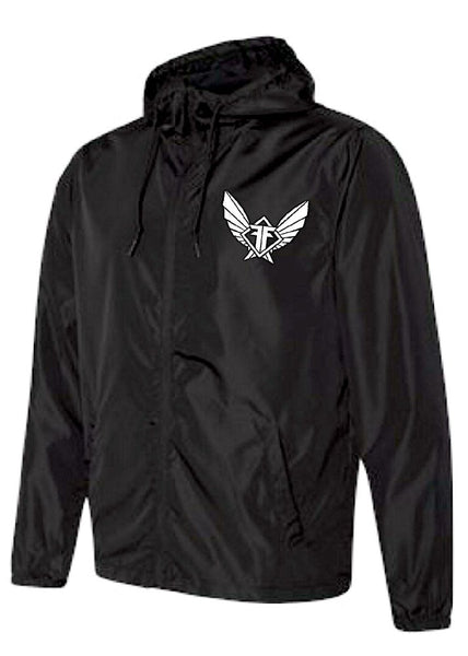 This black windbreaker is perfect for times you want stay FLY on a chilly day. It is lightweight, has an adjustable drawstring hood, and two front pockets for storage & hand warming .
